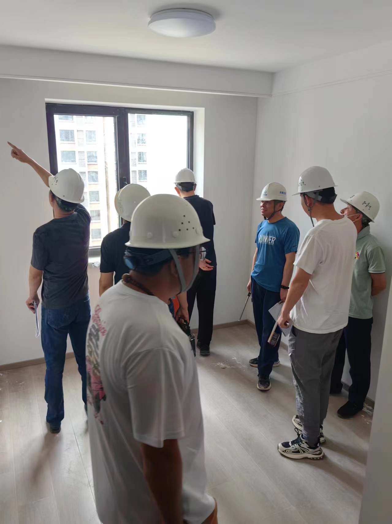 經(jīng)過(guò)昌平沙河項(xiàng)目部全體人員和公司人員的努力和付出,沙河項(xiàng)目取得了階段性的成果,今天由總包,監(jiān)理,甲方共同組織對(duì)我公司承接的三區(qū)7號(hào)樓進(jìn)行首次分戶驗(yàn)收和提出相應(yīng)的驗(yàn)收標(biāo)準(zhǔn)。