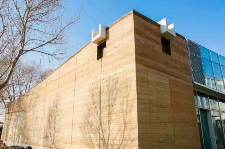 生活體驗館作為世園會距城市最近的展館,成為銜接城市與田園的重要節(jié)點。石籠墻、鏤空磚墻、夯土墻、木板墻、云紋玻璃幕墻的外墻裝飾與城市和山水格局相呼應。7個場館組成了一幅典型的山水田園畫卷。