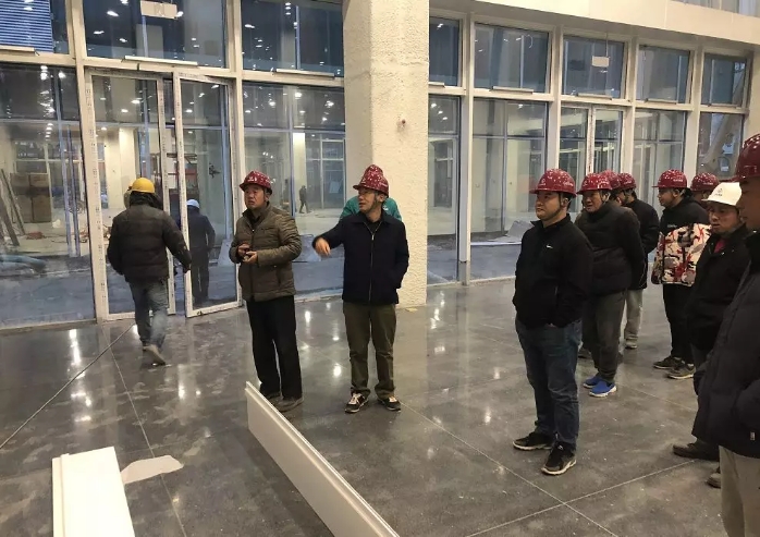 通過督導組與項目部的共同努力,在不到一個月的時間內(nèi),順利完成水磨石地面、墻面艾特板安裝、吊頂、幕墻封圍等作業(yè)。
