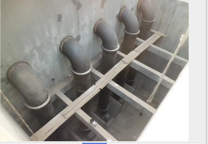 6. DN900進(jìn)水提升泵管道安裝。材質(zhì)為螺旋焊接鋼管,垂直安裝,高度11.2米。